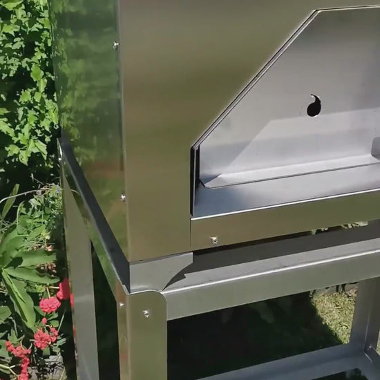 Altura perfecta para que tu horno se luzca dónde sea que se encuentre. Podrás moverlo fácilmente gracias a sus 4 ruedas de goma con frenos.